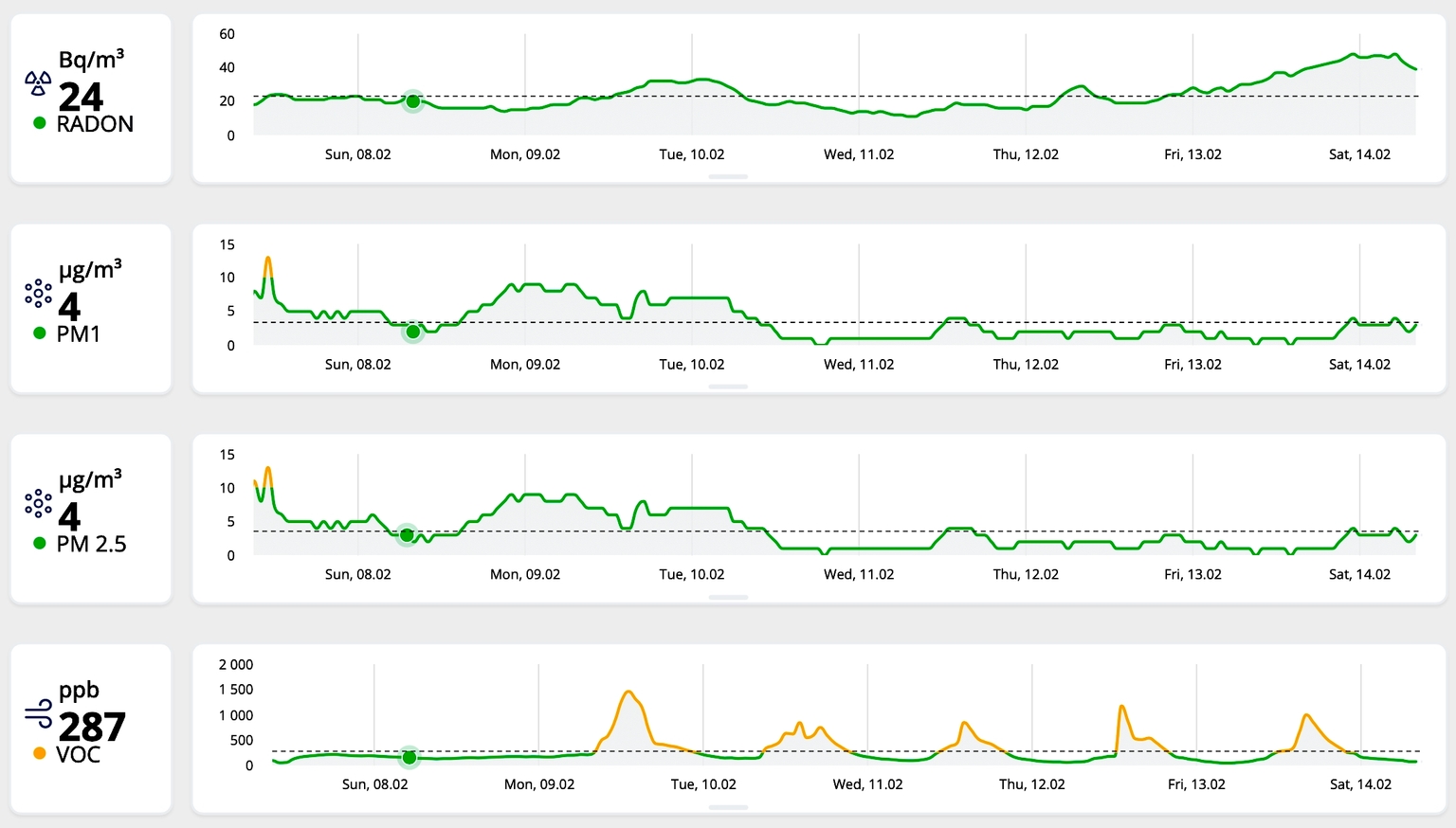 Negli ambienti indoor le concentrazioni possono aumentare rapidamente durante determinate attività. Monitorarle permette di capire quali comportamenti o situazioni influenzano maggiormente la qualità dell’aria.
