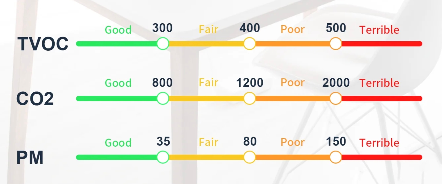Non esiste un unico limite normativo per il valore complessivo (TVOC) negli ambienti residenziali, ma in genere valori inferiori a 300 ppb sono considerati buoni, mentre concentrazioni superiori indicano la necessità di migliorare ventilazione o valutare le sorgenti emissive.